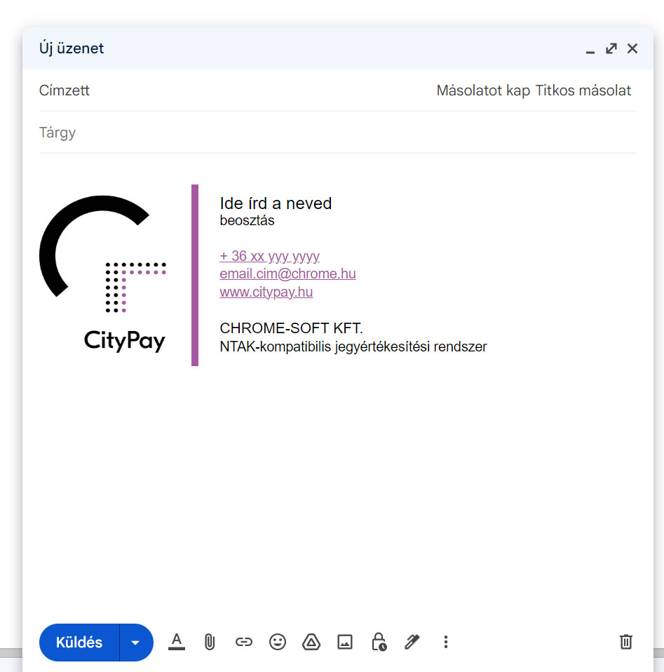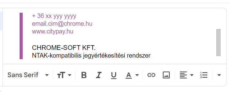A megjelent aláírásban jelöljük ki és írjuk át a minta adatokat a sajátunkra.