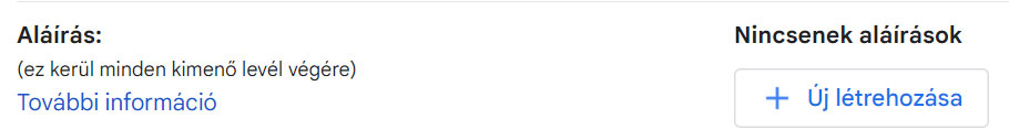 A megjelenő beállítások oldalon keresd meg az 'Aláírás' részt és az 'Új létrehozása' gombra kattints.