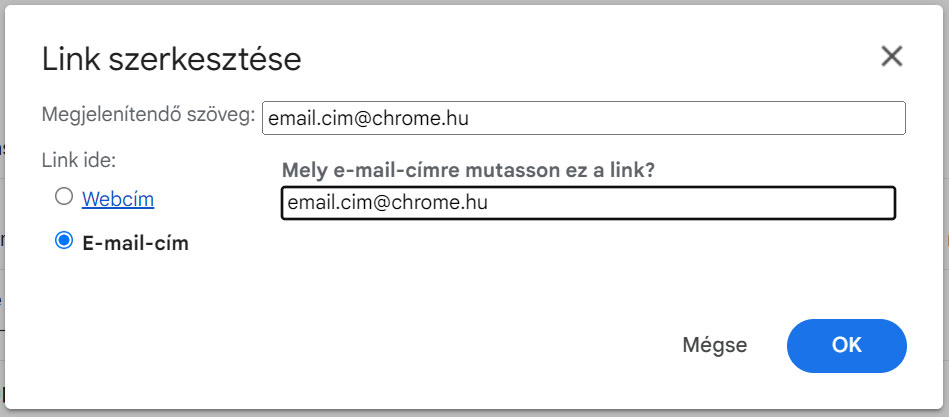 A telefonszám és az e-mail cím esetében amikor belekattintunk, megjelenik egy felugró ablak, itt is értelemszerűen a saját adatainkra írjuk át a jelenlegit.